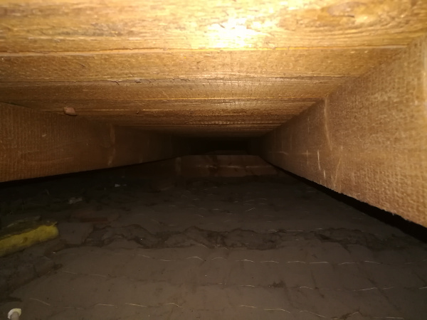 leeres Gefach Flachdach ungedämmt Hohlraum Flachdach vor der Einblasdämmung leerer ungedämmter Hohlraum im Flachdach