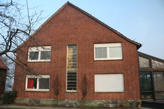 Oelde, Klinkerfassade gedämmt Klinkerfassaden werden durch die Zementfuge; in der T-Fuge nachträglich ausgeblasen. Dieses Wohnhaus in Oelde wurde mit Steinwollflocken isoliert.