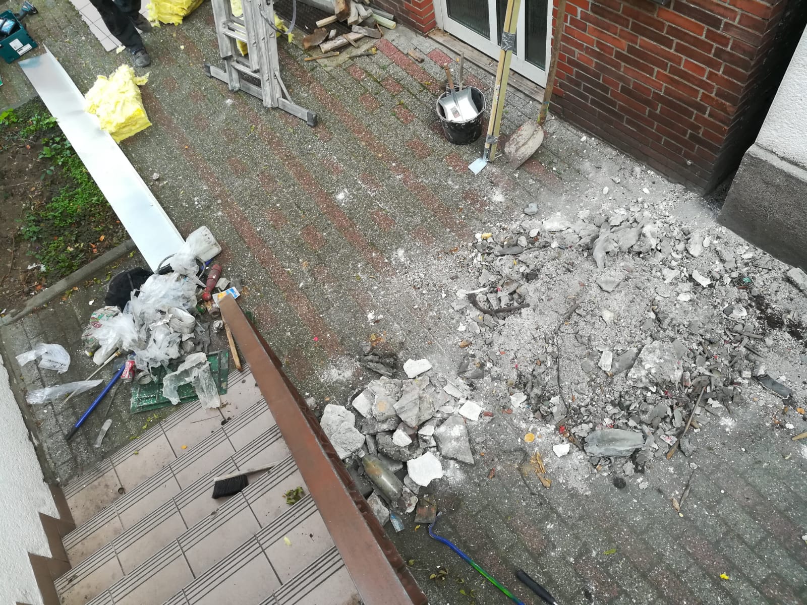 abgestopfte Gebäudetrennfuge Gebäudetrennfuge dämmen Vor der Einblasdämmung wird die Gebäudetrennfuge abgedichtet