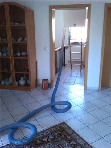 Steinwedel, Geschossdeckendämmung Glaswolle Sauberer Materialtransport durch den Wohnraum beim Kunden in Steinwedel