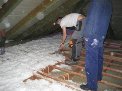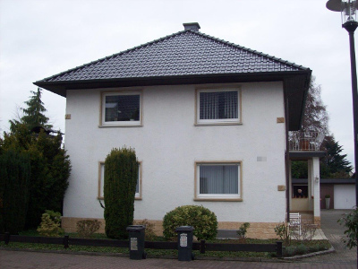 Verl, Kerndämmung mit Mineralwolle Die Außenfassade dieses Walmdachhauses in Verl wurde mit Mineralwolle per Einblasdämmung isoliert